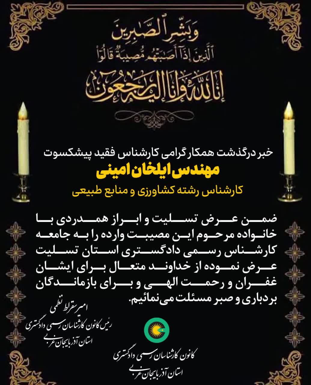 درگذشت همکار گرامی کارشناس فقید مهندس ایلخان امینی