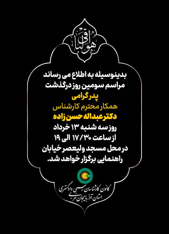 مراسم سومین روز درگذشت پدر گرامی جناب آقای عبداله حسن زاده کارشناس رشته کشاورزی و منابع طبیعی