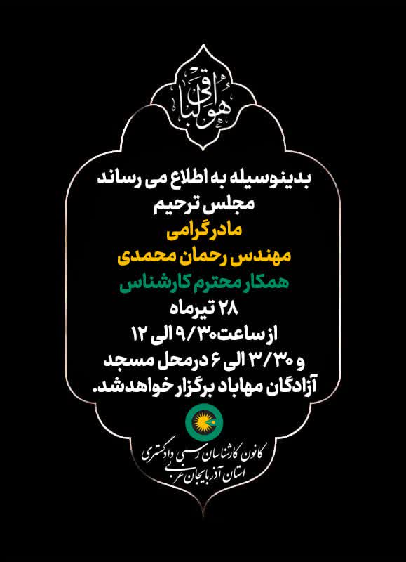 درگذشت مادر گرامی جناب آقای مهندس رحمان محمدی