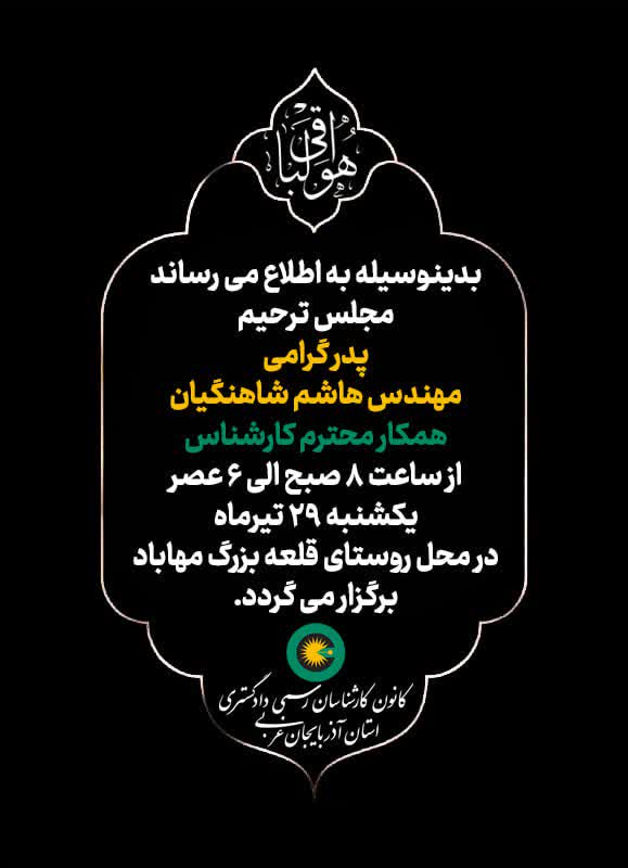 درگذشت پدر گرامی جناب آقای مهندس هاشم شاهنگیان