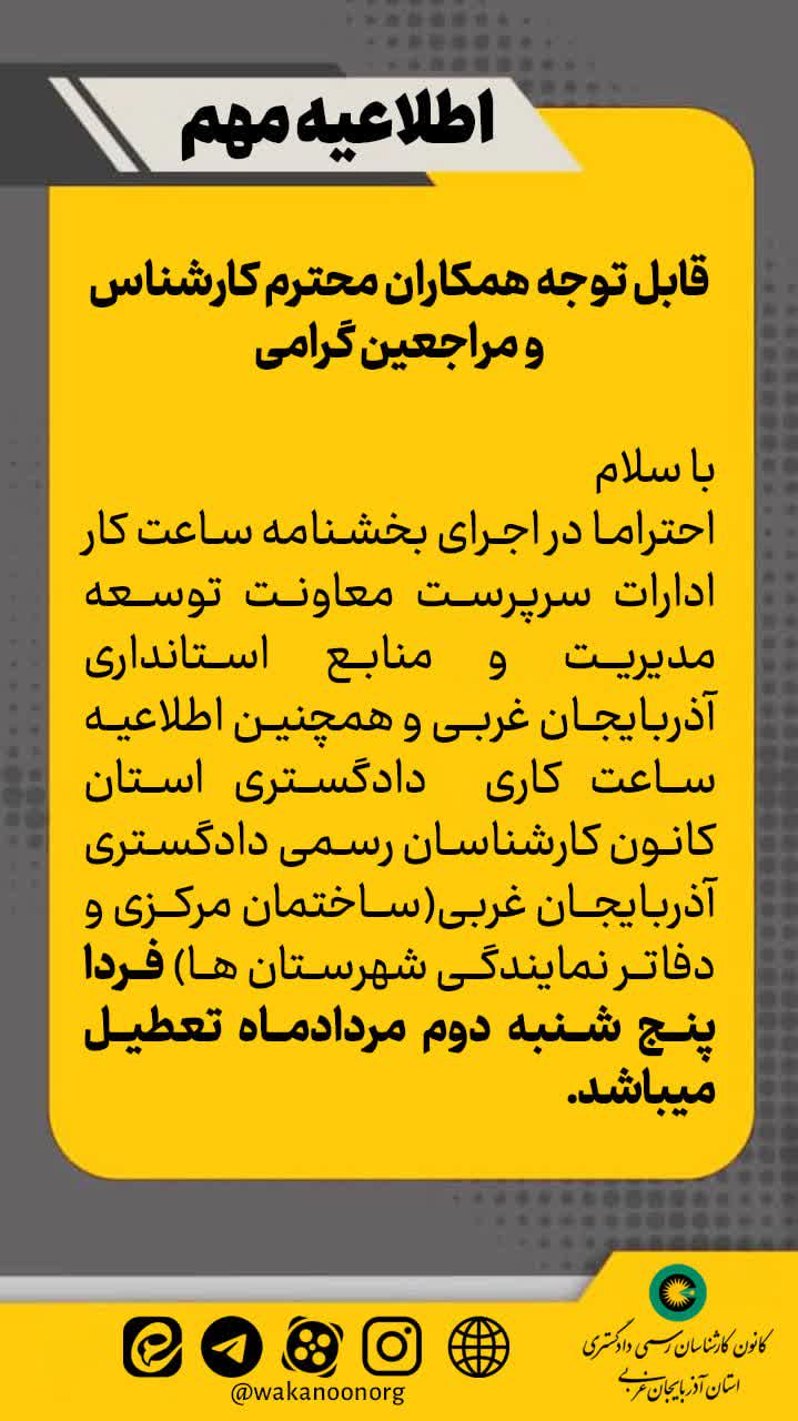 کانون فردا پنج شنبه مورخه 1404/05/02 تعطیل می باشد.
