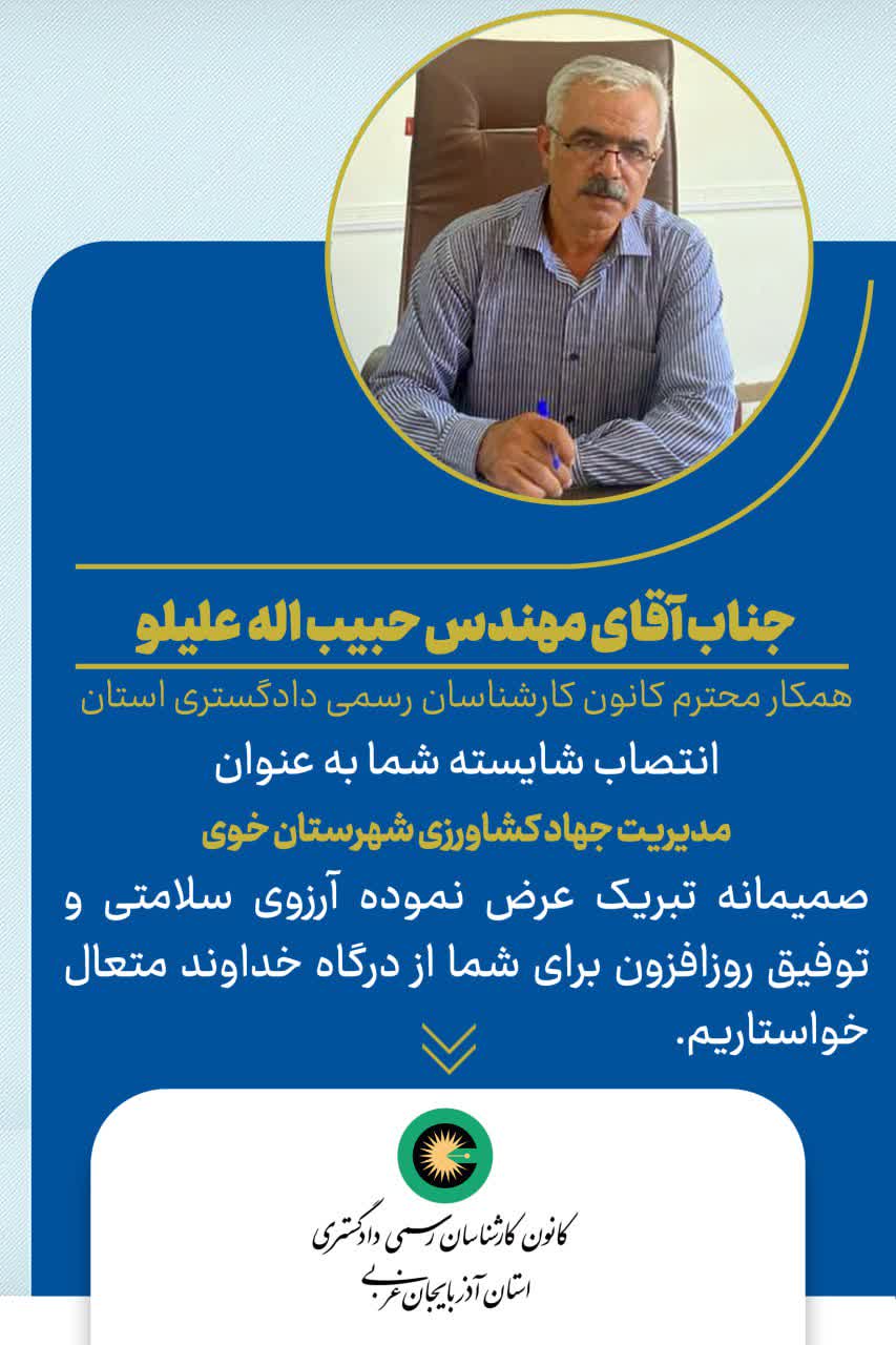 انتصاب شایسته جناب آقای حبیب اله علیلو به عنوان مدیریت جهاد کشاورزی شهرستان خوی