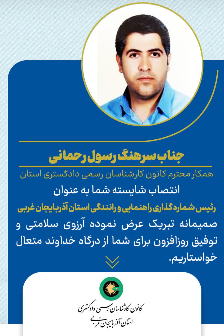انتصاب شایسته جناب سرهنگ رسول رحمانی به عنوان رئیس شماره گذاری راهنمایی و رانندگی