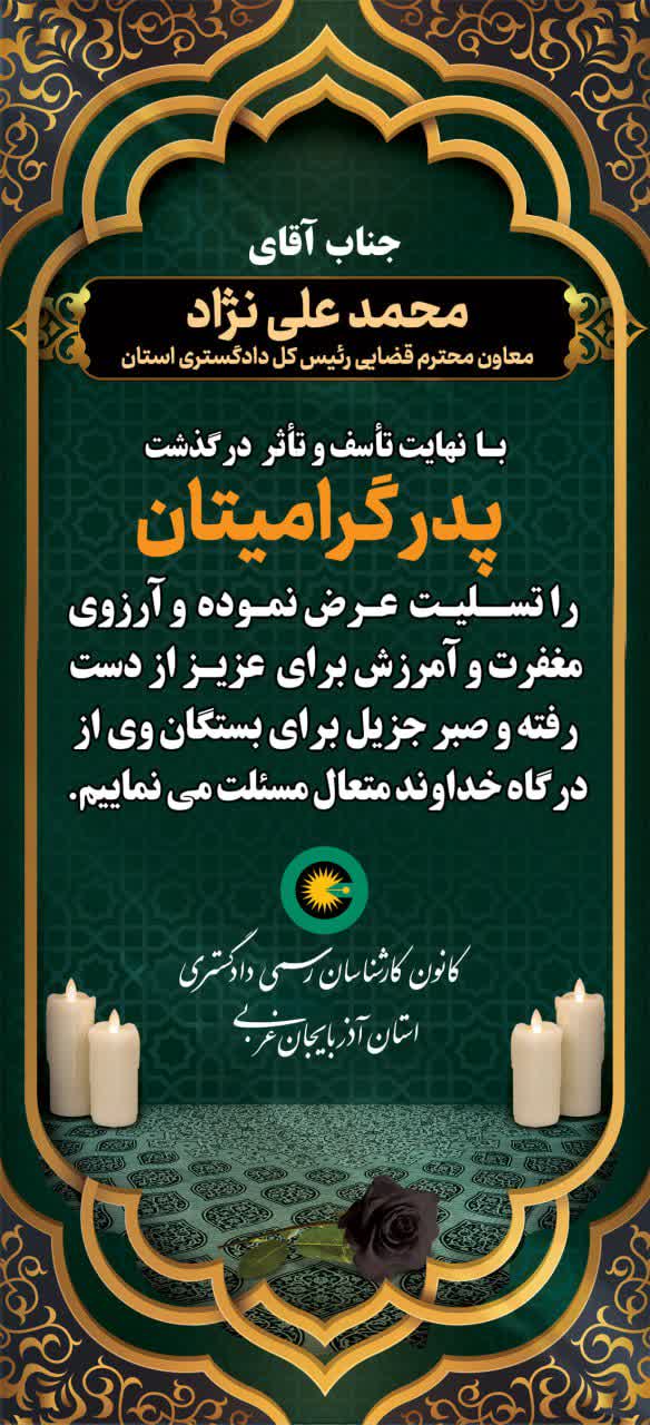 درگذشت پدر گرامی جناب آقای محمد علی نژاد معاون محترم قضائی رئیس کل دادگستری