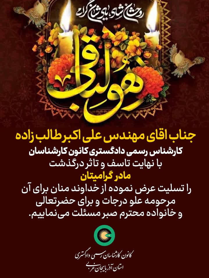 درگذشت مادر گرامی جناب آقای مهندس علی اکبر طالب زاده