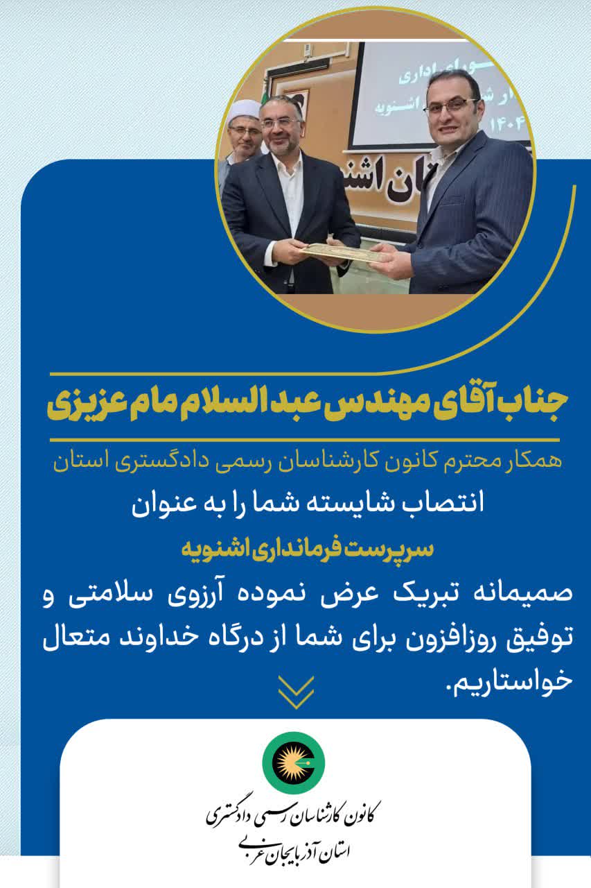 انتصاب شایسته جناب آقای عبد السلام مام عزیزی به عنوان سپرست فرمانداری اشنویه