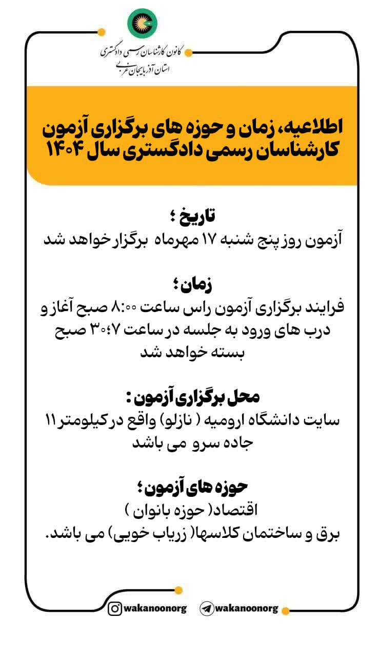 اطلاعیه زمان و حوزه های برگزاری آزمون کارشناسی 1404