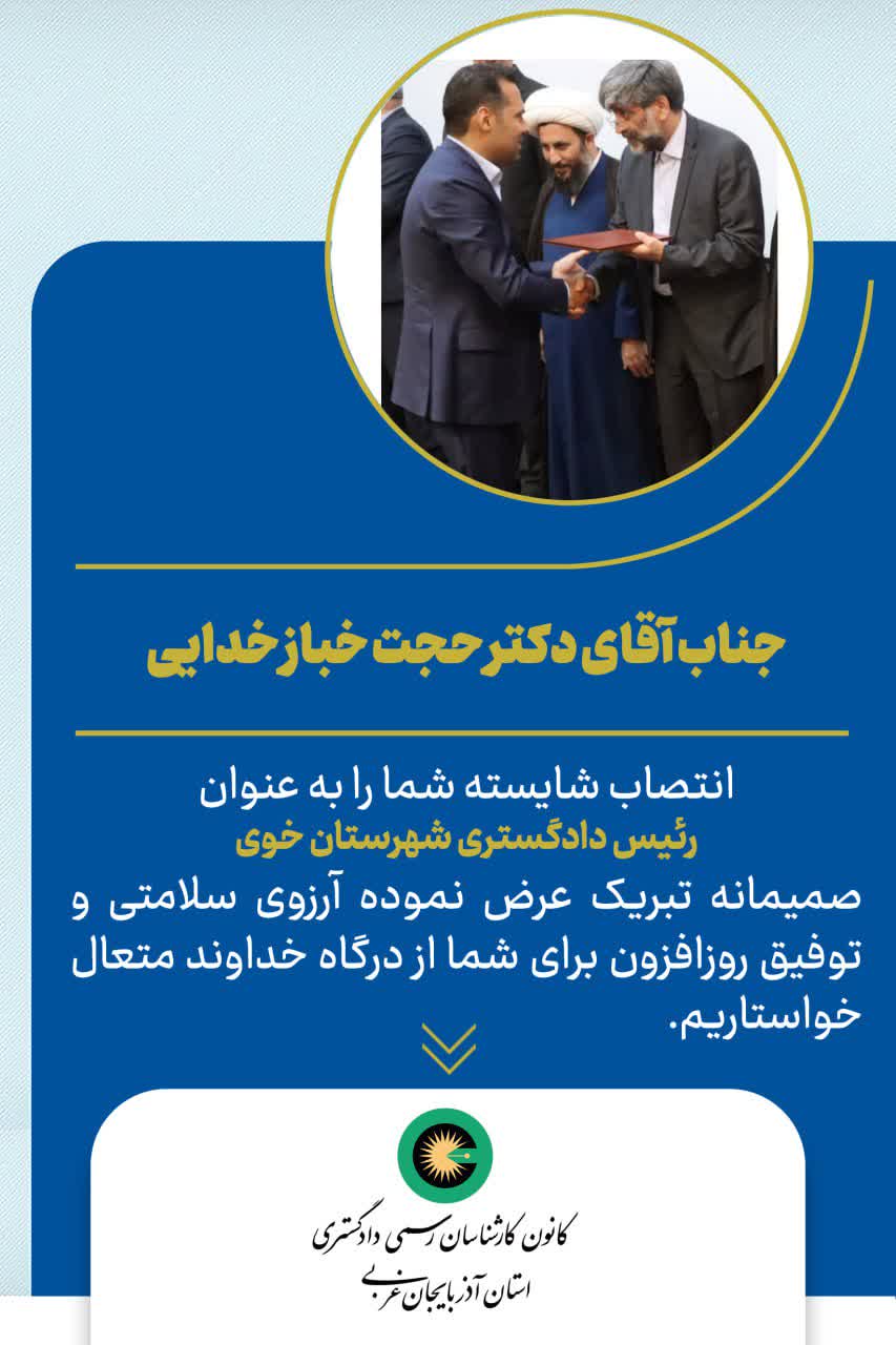 انتصاب شایسته جناب آقای دکتر حجت خبازی خدایی به عنوان رئیس دادگستری شهرستان خوی
