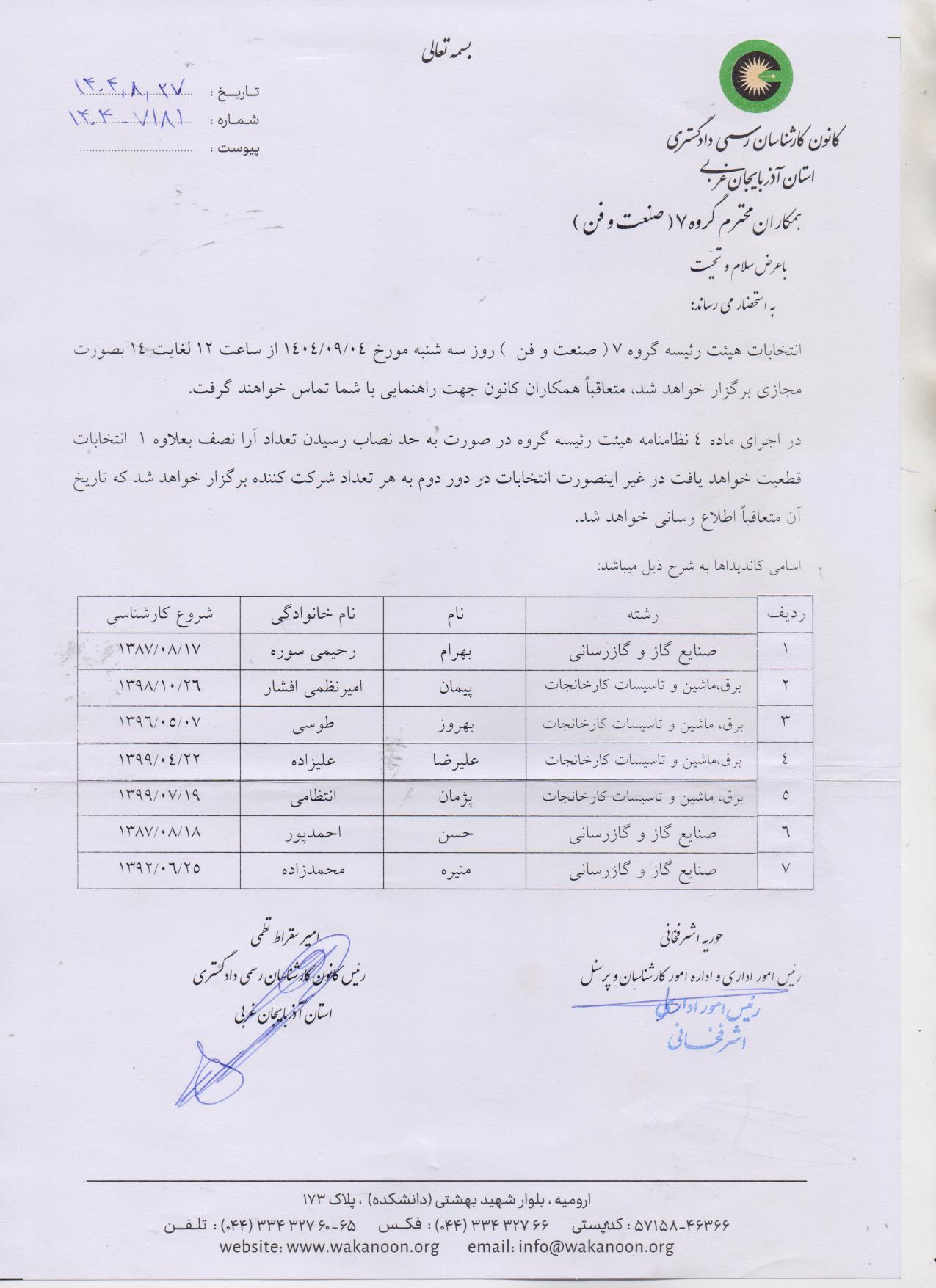 کاندیدهای انتخابات هیئت رئیسه گروه 7 (صنعت و معدن)