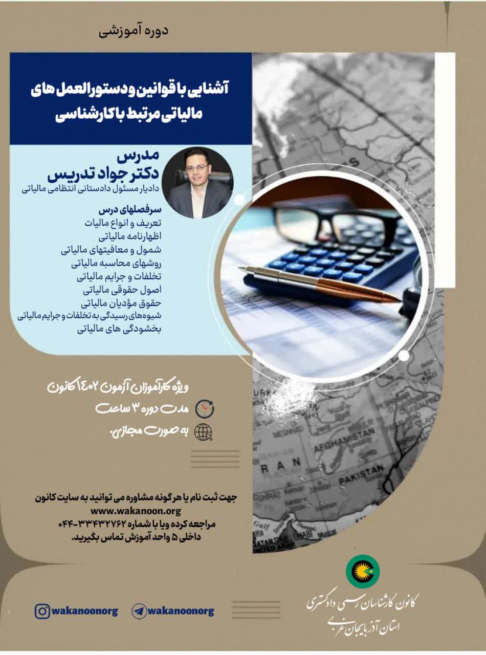 دوره آموزشی آشنایی با قوانین و دستورالعمل های مالیاتی مرتبط با کارشناسی