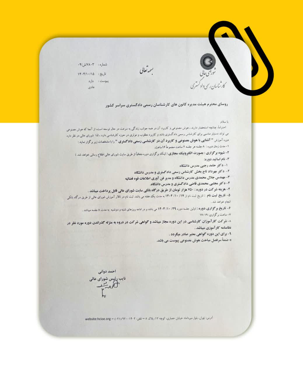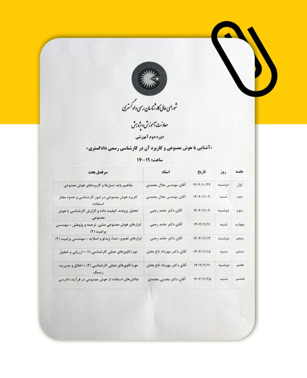 🔖دوره دوم آشنایی با هوش مصنوعی و کاربرد آن در کارشناسی رسمی دادگستری