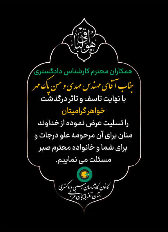 درگذشت خواهر گرامی جناب آقای مهندس مهدی و حسن پاک مهر همکاران محترم کارشناس