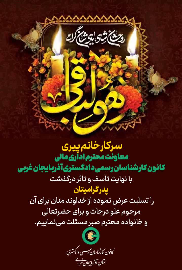 درگذشت پدر گرامی سرکار خانم پیری معاونت محترم اداری مالی